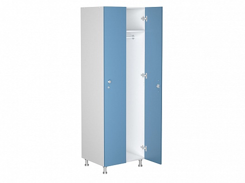 Шкаф двухсекционный для одежды из ЛДСП толщиной 16 мм с влагостойкими и термостойкими фасадами отличный вариант для раздевалок и камер хранения в образовательных заведениях, офисных и производственных комплексов. Сдержанный дизайн в бело-голубом исполнении впишется практически в любой интерьер. Есть возможность менять направление открывания дверей. У всех шкафов задняя стенка выполнена из древесноволокнистой плиты высокой плотности (ХДФ ) толщиной 3 мм. В шкафу предусмотрены металлическая ручка, замок с ключом, а также регулируемые опоры для хорошей устойчивости на неровных полах. Все шкафы серии WL можно соединить друг с другом. Шкафы серии WL поставляются в разобранном виде.